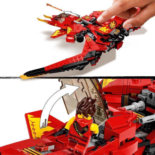- Odświeżona wersja pojazdu bojowego Kaia z serialu NINJAGO® Mistrzowie Spinjitzu, który ma składane skrzydła, regulowany kokpit i dwie sprężynowe wyrzutnie. W przerwie między zaciekłymi bitwami może być świetną ozdobą dziecięcej sypialni.