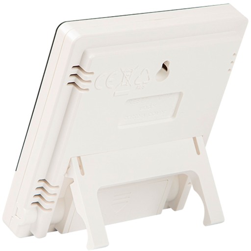 - Z tyłu stacji pogody została wmontowana podpórka, umożliwiająca ustawienie stacji pogody bez konieczności opierania o inne przedmioty.