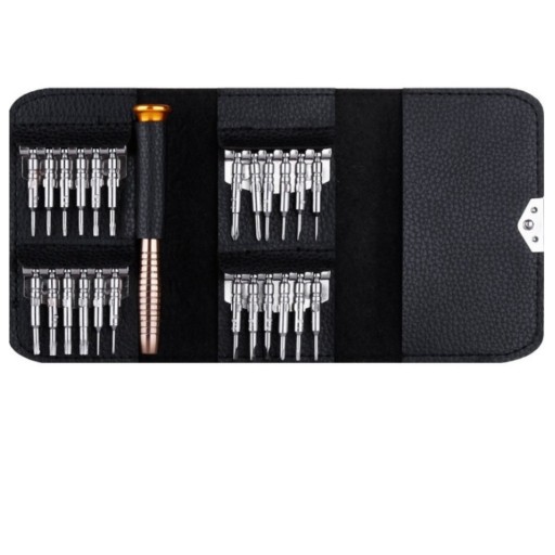 Składa się z precyzyjnego wkrętaka, który posiada 24 różne wymienne końcówki, umożliwiające obsługę różnorodnych rodzajów śrub. Dzięki kompaktowym rozmiarom oraz różnorodności końcówek, zestaw ten jest idealny do precyzyjnej pracy przy drobnych elementach elektronicznych, zegarkach czy okularach. Jest praktycznym narzędziem dla majsterkowiczów, elektroników oraz wszystkich osób zajmujących się drobnymi naprawami. Zestaw ten sprawdza się też w gospodarstwach domowych, gdzie gra rolę narzędzia pod ręką do napraw na szybko.