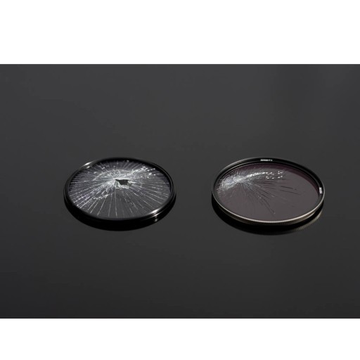 Inne filtry UV są wykonane ze zwykłego szkła, szkła optycznego lub materiałów, które łatwo pękają pod wpływem nagłego uderzenia. Rozbite fragmenty filtra UV mogą uszkodzić przednią soczewkę obiektywu. Może to spowodować nieodwracalne uszkodzenie obiektywu i jego powłok, a co za tym idzie ogromne straty finansowe.