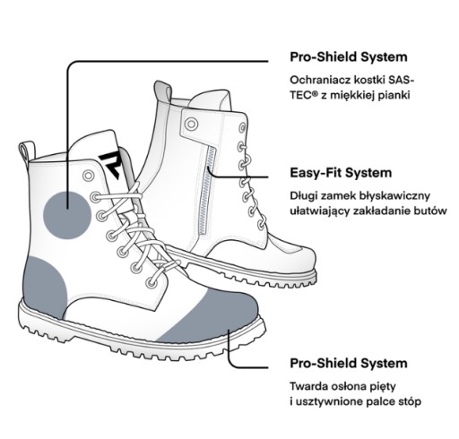 - długi zamek błyskawiczny ułatwiający zakładanie butów