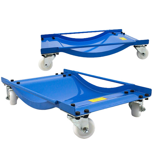 Dzięki oferowanym przez nas wózkom w szybki i łatwy sposób przemieścisz samochód w dowolne miejsce. Masywna konstrukcja sprawia, że wózki są stabilne i bardzo wytrzymałe. Udźwig jednego wózka to aż 450 kg. Idealnie sprawdzą się w salonach samochodowych, warsztatach. Przydatne przy holowaniu, naprawie oraz wystawach samochodowych. Waga jednego wózka to 8,10 kg.