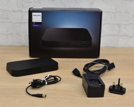 Sync Box obsługuje rozdzielczość do 4K, ma jedno wyjście, które łączy się z telewizorem i cztery wejścia HDMI. Urządzanie automatycznie przełącza się na urządzenie, które w danym momencie aktywnie odtwarza zawartość na ekranie telewizora. Sync Box działa natychmiast po podłączeniu do dowolnego telewizora, urządzenia wyposażonego w wyjście HDMI i mostka Hue.