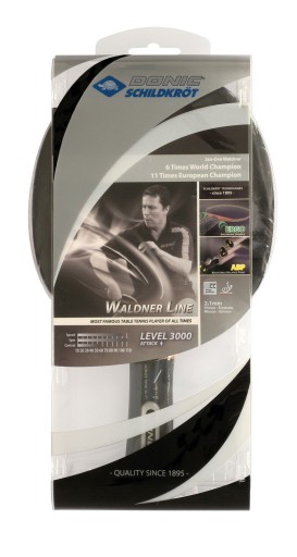 "Waldner 3000 Carbon" firmy Donic-Schildkröt to absolutnie topowa rakieta z linii Waldner, która dedykowana jest światowej sławy graczowi Donic i wielokrotnemu mistrzowi świata Janowi-Ove Waldnerowi. Zarówno ambitni gracze rekreacyjni, jak i zorientowani na wyniki gracze wyczynowi docenią ten model rakiety. Produkt premium opracowany w Niemczech. Specjalnie wyselekcjonowane najwyższej jakości drewno zostało wyposażone we wzmocnienie z włókna węglowego, aby generować więcej mocy dzięki zoptymalizowanemu odtwarzaniu energii i kontroli, dzięki lepszej sztywności skrętnej przy uderzeniu piłką. Technologia zaczerpnięta ze sportów wyczynowych trafia teraz również do rakiet rekreacyjnych: dzięki tak zwanej "rękojeści ERGO" Donic-Schildkröt zapewnia płynne przejście od łopatki do rękojeści bez krawędzi, dzięki czemu rakietka jest zauważalnie lepiej leży w dłoni, a na palcu wskazującym nie mogą powstawać żadne niepokojące punkty nacisku. Ten projekt chwytu zapewnia również korzyści w zakresie szybkiego przełączania z forhendu na bekhend i odwrotnie, co jest wyraźną zaletą w grze, która jest tak szybka jak tenis stołowy. Nawet w przypadku gumy zatwierdzonej przez ITTF, położono nacisk na najwyższą jakość i wyraźne korzyści dla udanej gry: podkręcenie i wszystkie inne techniki gry są optymalnie przenoszone na piłkę, a wysokiej jakości gąbka o wysokości 2,1 mm zapewnia optymalne przyspieszenie piłki. Dzięki technologii "Adjustable Balance Point" (ADP) możliwe jest indywidualne dostosowanie charakterystyki gry tego rakietka do tenisa stołowego, aby w ciągu kilku sekund dostosować punkt równowagi do osobistych preferencji. Środek ciężkości przesunięty w kierunku chwytu = większa kontrola nad piłką i "spin" (potencjał rotacji), środek ciężkości przesunięty w kierunku głowy = większa moc. Optymalna ochrona podczas transportu dzięki solidnemu opakowaniu blistrowemu.