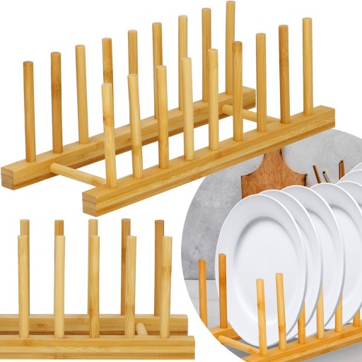 STOJAK NA TALERZE DESKI POKRYWKI GARNKÓW BAMBUSOWY