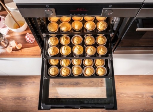 Nowa konstrukcja wnętrza piekarnika gwarantuje prezycyjną dystrybucję ciepła w całej komorze, dzięki temu dania wypieką się równomiernie na wszystkich poziomach.