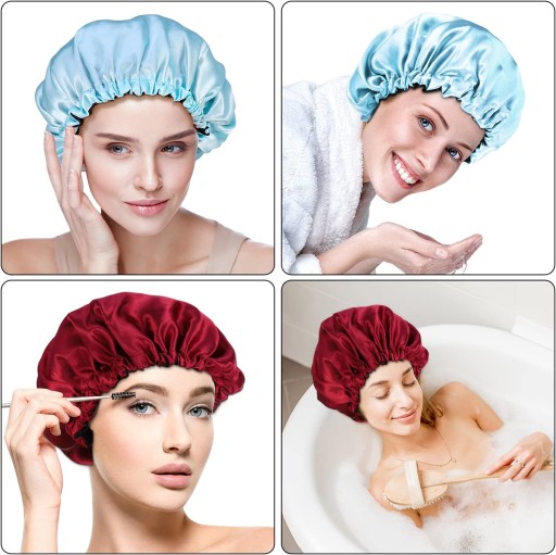 Tkanina Premium: Satynowe czepki wykonane są z wysokiej jakości jedwabistej satynowej warstwy zewnętrznej i wewnętrznej warstwy EVA. Miękki i oddychający, lekki i niełatwy do wyblaknięcia. Jedwabista w dotyku sprawia, że jest wygodna w noszeniu.
