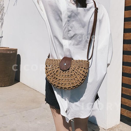 Torebka na ramię BOHO KOSZYK PÓŁKSIĘŻYC Pleciona