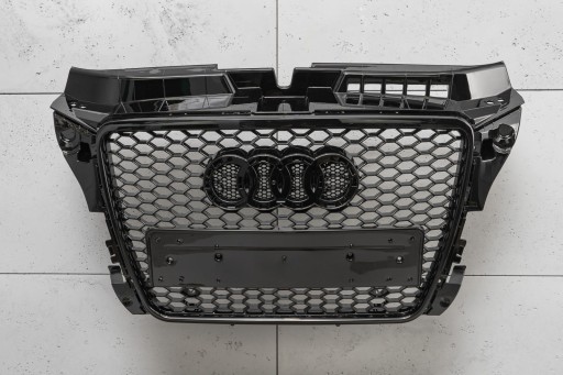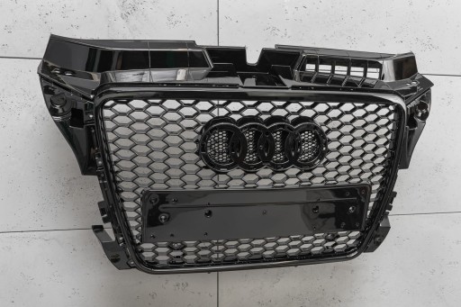 Dedykowany grill zaprojektowany został w stylu charakterystycznym dla samochodów z segmentu RS. Kratka grilla o charakterystycznym wzorze plastra miodu, nieodzownie przywodzi na myśl budzące respekt, pełne mocy samochody sportowe z najwyższej półki. Element zachwyca sportowym charakterem, a połysk czarnych lakierowanych elementów dodaje mu elegancji - dzięki czemu doskonale współgra z imponującym designem AUDI A3.