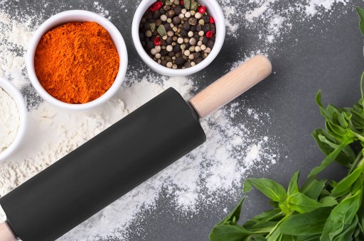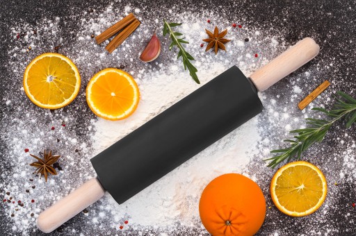 Вращающийся ВАЛОК ДЛЯ РАСКАТКИ ТЕСТА с деревянными ручками, черный силикон.