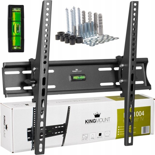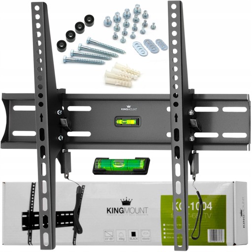 - W zestawie uniwersalny komplet śrub montażowych do telewizora oraz komplet wkrętów i kołków do ściany, poziomica