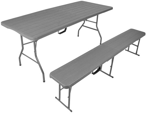 STÓŁ CATERINGOWY SKŁADANY W WALIZKĘ 180x74CM MAX.100KG WOODLAND DESKA CIEMNY SZARY
