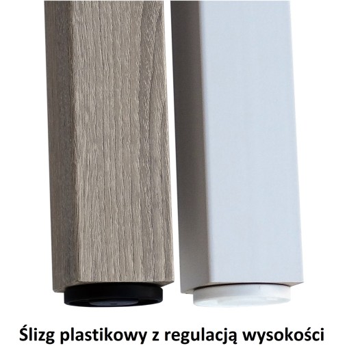 Nr.2 Ślizg plastikowy z regulacją wysokości od 1 do 2 cm (za dopłatą), który dodatkowo chroni nogi stołu przed wodą.