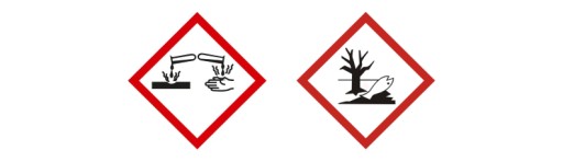 - Powoduje poważne oparzenia skóry oraz uszkodzenia oczu. Działa bardzo toksycznie na organizmy wodne.