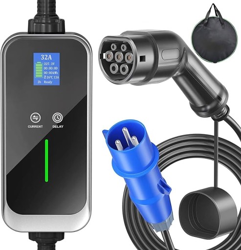 - Regulowany prąd: maksymalna prędkość ładowania wynosi 7,2 kW/h. Opóźnienie ładowarki typu 2 regulowane od 16A/20A/24A/32A. Po podłączeniu ładowarki należy ustawić zasilanie, a ładowarka nie jest podłączona do samochodu.