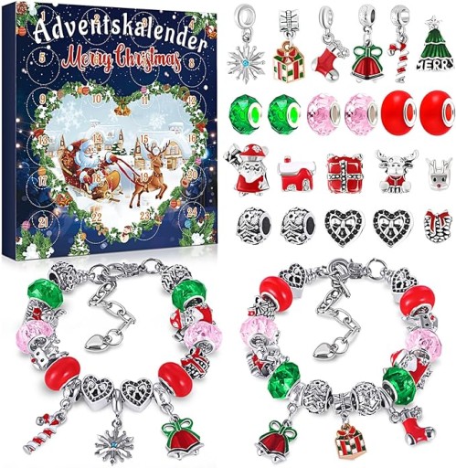 - Kalendarz adwentowy dla dzieci: ten kalendarz adwentowy 2023 dzieci 2 srebrne bransoletki o różnych długościach i 22 akcesoria w różnych stylach. Zawiera elementy takie jak Mikołaj, bałwan, łoś, płatki śniegu, choinka i wiele innych. Akcesoria te można łączyć według własnych upodobań w dwie różne bransoletki, które nadają się na prezenty świąteczne.