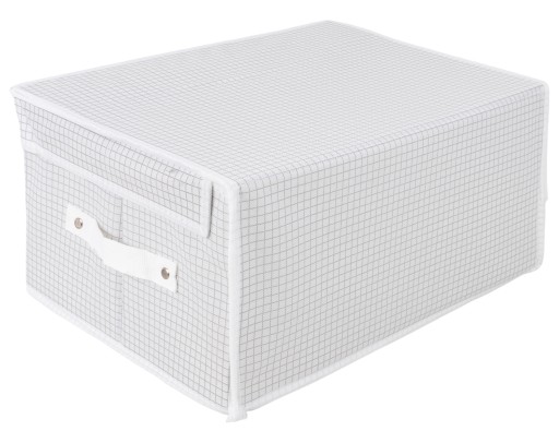 Pudełko wyposażone jest w wygodny uchwyt, który umożliwia łatwe przenoszenie. Doskonałe do przechowywania ubrań, pościeli czy innych tekstyliów domowych, nadaje się idealnie do szafy, na półkę czy jako samodzielny element w pokoju.