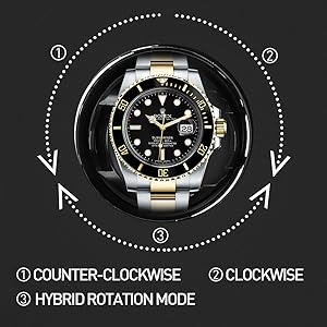 Nakręcacz zegarków iRoll ma 3 tryby obrotu: tryb zgodny z ruchem wskazówek zegara/tryb przeciwny do ruchu wskazówek zegara/zgodnie z ruchem wskazówek zegara + tryb przeciwny do ruchu wskazówek zegara oraz 5 ustawień TPD (obrotów dziennie) od 650, 900, 1350, 1800 lub 2200. Wiele trybów obrotu sprawia, że nakręcacz zegarka jest łatwy w użyciu. I jest bardziej kompatybilny z Twoimi ukochanymi zegarkami. Poza tym można nim sterować także zdalnie, dzięki czemu w każdej chwili można z łatwością sterować rotomatem.