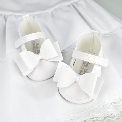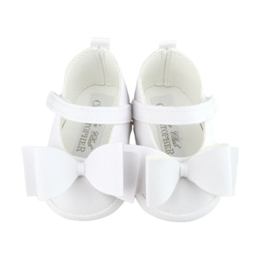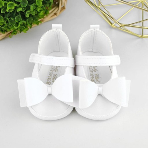BIAŁE NIECHODKI Z EKO SKÓRY ZAPINANE NA RZEP BUTY NIEMOWLĘCE DLA DZIEWCZYNKI
