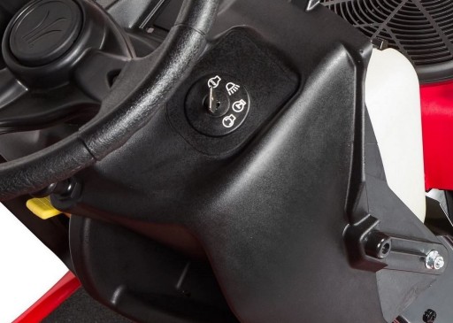 Traktor posiada komfortowy fotel oraz wyłącznik bezpieczeństwa, który automatycznie wyłącza silnik oraz urządzenie tnące, jeżeli użytkownik opuści fotel. Przyjemna w dotyku, miękka kierownica zapewnia wygodę podczas manewrowania urządzeniem.