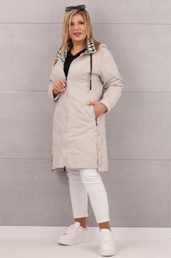 Ta stylowa długa kurtka płaszcz jest idealna na sezon przejściowy. Wyróżnia się długością do kolan oraz unikalnym kapturem z kontrastującą, wzorzystą podszewką. Wyposażona w praktyczne kieszenie i odpinany kaptur ściągany ozdobnymi tasiemkami, stanowi nie tylko praktyczny element garderoby, ale również wyrazisty dodatek do wielu stylizacji. Starannie wykończone detale sprawiają, że ta kurtka to doskonały wybór na różnorodne okazje, dodając elegancji i charakteru każdej stylizacji.