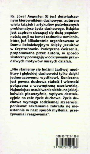 Codzienny rachunek sumienia, który proponuje św. Ignacy Loyola w "Ćwiczeniach duchownych", nie jest "rozliczaniem się" z własnych upadków i słabości, ale szczerym i miłosnym dialogiem człowieka z Bogiem o naszym życiu. W codziennym rachunku sumienia odkrywamy najpierw bezwarunkową miłość Boga, a następnie naszą odpowiedź na nią. Rachunek sumienia, na który Ojciec Ignacy każdego dnia każe przeznaczyć kwadrans, to codziennym "Kwadrans szczerości" - kwadrans szukania Prawdy o Bogu i prawdy o człowieku.