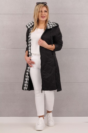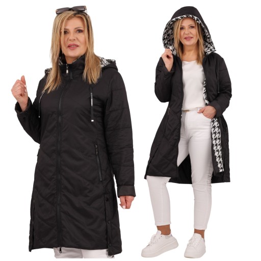 Ta stylowa długa kurtka płaszcz jest idealna na sezon przejściowy. Wyróżnia się długością do kolan oraz unikalnym kapturem z kontrastującą, wzorzystą podszewką. Wyposażona w praktyczne kieszenie i odpinany kaptur ściągany ozdobnymi tasiemkami, stanowi nie tylko praktyczny element garderoby, ale również wyrazisty dodatek do wielu stylizacji. Starannie wykończone detale sprawiają, że ta kurtka to doskonały wybór na różnorodne okazje, dodając elegancji i charakteru każdej stylizacji.