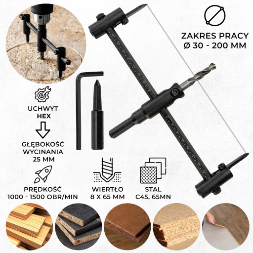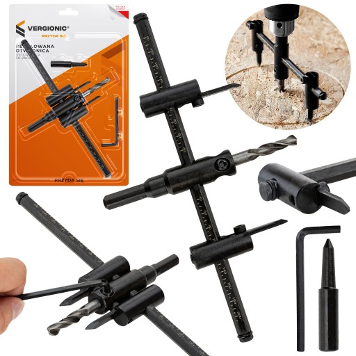 Jeśli szukasz narzędzia, które pozwoli Ci na tworzenie otworów o precyzyjnie dopasowanym rozmiarze, ta otwornica cyrklowa jest właśnie dla Ciebie. Zapewniając niezrównaną wszechstronność i precyzję, umożliwia wiercenie w szerokim zakresie rozmiarów, od 30 do 200 mm, idealnie sprawdzając się w projektach wymagających precyzji i adaptacji.