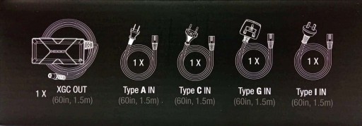 - Zawiera zasilacz XGC 56 W oraz kabel zastępczy 60 cali (1,5 m) AC do Australii (typ I), Europy (typ C), Ameryki Północnej (typ A) i Wielkiej Brytanii (typ G).