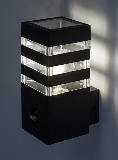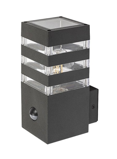 Nowoczesna oprawa ścienna Ankara z czujnikiem ruchu, do zastosowania na zewnątrz jest idealnym wyborem zarówno na taras, jak i na zewnętrzną ścianę domu, na przykład do oświetlenia ścieżki prowadzącej do wejścia. Aluminiowa oprawa w kolorze antracytowym jest uzupełniona paskami przezroczystego klosza z tworzywa sztucznego, zapewniającego ekscytujący efekt świetlny. Oprawę można przymocować do ściany za pomocą elementu wystającego z dolnej części. Do oprawy Ankara można zastosować źródło światła E27 o mocy max. 12 W. Inteligentny czujnik ruchu, dostosowujący jasność oprawy do warunków zewnętrznych, wykrywa ruch z odległości 6-8 metrów, w zakresie 105°. Wymiary oprawy zewnętrznej są następujące: szerokość 90 mm, wysokość 200 mm, a odległość od ściany 135 mm. Oprawa charakteryzuje się stopniem ochrony IP44, co zapewnia jej ochronę przed wnikaniem przedmiotów o średnicy do 1 mm oraz przed wodą docierającą ze wszystkich kierunków. Zewnętrzna oprawa ścienna Ankara z czujnikiem ruchu jest dostarczana bez źródła światła.