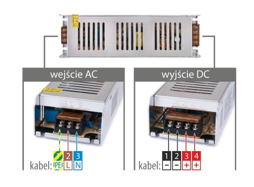 Zasilacz przeznaczony jest do urządzeń elektrycznych zasilanych prądem stałym 12V DC. Głównie wykorzystywany do taśm LED. Zasilacz cechuje wąska konstrukcja typu SLIM.