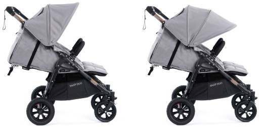 Snap Duo Sport to lekki (12,75kg.) wózek spacerowy australijskiej marki Valco Baby. Przeznaczony dla dwójki dzieci już od momentu urodzenia (po dokupieniu gondolek) aż do 22 kg wagi (na jedno siedzisko). Charakteryzuje się szerokimi i wygodnymi siedziskami z rozszerzaną budką, rozkładanym do pozycji leżącej oparciem oraz pompowanymi kołami.