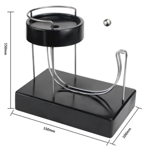 Model pokazuje prawa fizyki min. zachowania pędu i energii.
