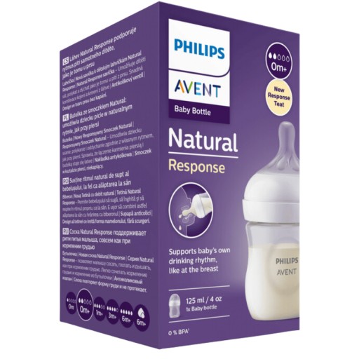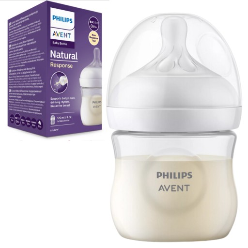 Wsparcie naturalnego rytmu ssania niemowlęcia Smoczek imitujący pierś Smoczek Natural Response umożliwia wypływanie mleka tylko w momencie aktywnego ssania przez niemowlę. Niemowlę pije, połyka i oddycha całkowicie naturalnie, tak samo jakby ssało pierś. Smoczek ułatwia łączenie karmienia naturalnego i butelką. Łatwe łączenie karmienia piersią i butelką Naturalne przysysanie dzięki smoczkowi w kształcie sutka Smoczek umożliwia wypływanie mleka tylko w momencie aktywnego ssania przez niemowlę. Inne zalety Wybierz odpowiednią prędkość wypływania pokarmu dla swojego dziecka Specjalna budowa smoczka zapobiegająca kapaniu chroni przed rozlewaniem się mleka Zgodność z innymi produktami Philips Avent Łatwa do trzymania, nawet przez malutkie rączki Łatwe używanie, mycie i składanie Smoczki i butelki Natural Response nie zawierają bisfenolu A* Poczekaj cierpliwie — dziecko musi się przyzwyczaić Nakładka antykolkowa nie pozwala powietrzu trafiać do brzuszka Zaprojektowana, aby ograniczać kolkę i dyskomfort Dane techniczne Zawartość zestawu Butelka dla niemowląt 125 ml: 1 pcs Zawartość zestawu Smoczek z regulacją przepływu (2 prędkości): 1szt.
