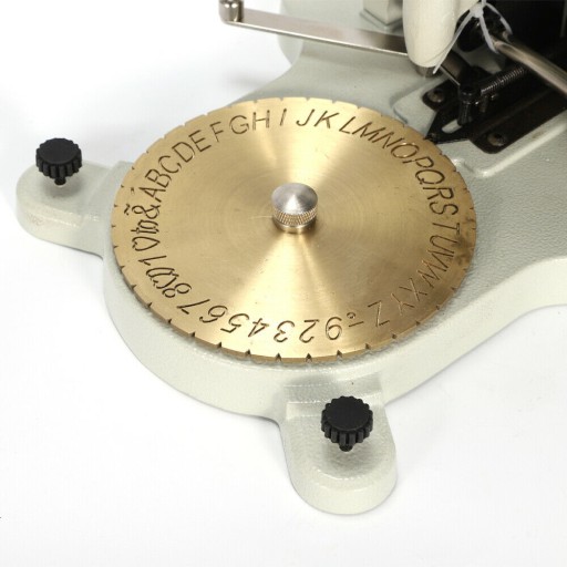 Profesjonalny grawer wewnątrz pierścienia, ze standardową tarczą z blokiem liter, zaprojektowany w Japonii.