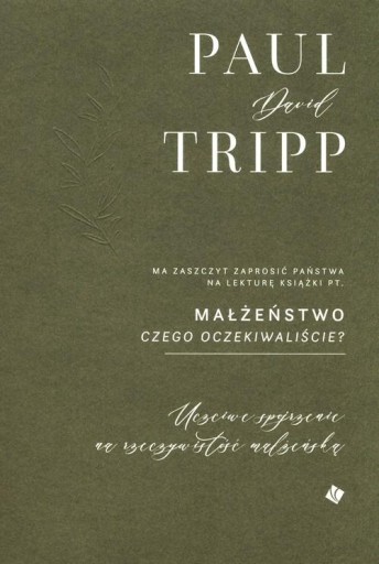 Prędzej czy później każde małżeństwo staje się polem bitwy. Każde małżeństwo w końcu zmienia się w coś, czym nigdy nie miało się stać.Na pewnym etapie zaczniecie potrzebować czegoś znacznie bardziej solidnego niż powiew uczuć. Będziecie potrzebować czegoś głębszego niż wspólne zainteresowania i pociąg fizyczny. Będziecie potrzebować zmiany oczekiwań i radykalnych zobowiązań oraz – co najważniejsze – będziecie potrzebować łaski.Paul David Tripp jest przewodniczącym Paul Tripp Ministries oraz dyrektorem wykonawczym Center for Pastoral Life and Care w Fort Worth w Teksasie. Wykładał w różnych cenionych instytucjach edukacyjnych na całym świecie. Jest autorem wielu książek, w tym Łaska na co dzień, oraz Zachwyt. Paul od ponad czterdziestu lat jest mężem Luelli, z którą ma czworo dorosłych dzieci. Więcej informacji oraz materiałów dodatkowych znajdziesz na stronie: .