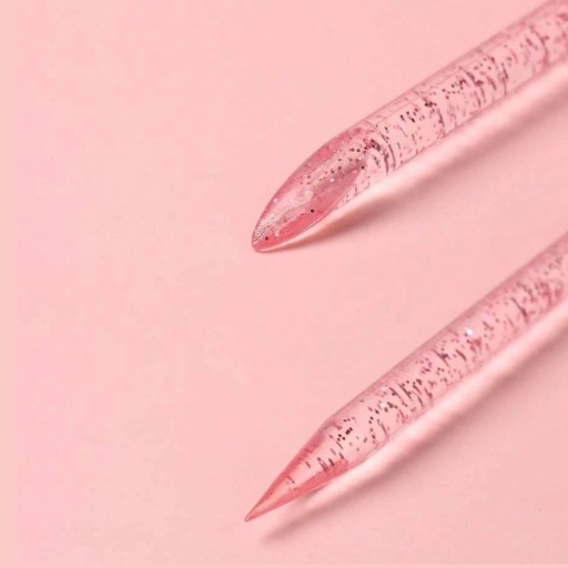 Brokatowe patyczki idealnie sprawdzą się w wielu salonach kosmetycznych. Z jednej strony znajduje się płaska łopatka służąca do odsuwania skórek z płytki paznokcia. Spiczastą końcówkę wykorzystasz przy korygowaniu niedoskonałości powstałych podczas wykonywania zdobień.