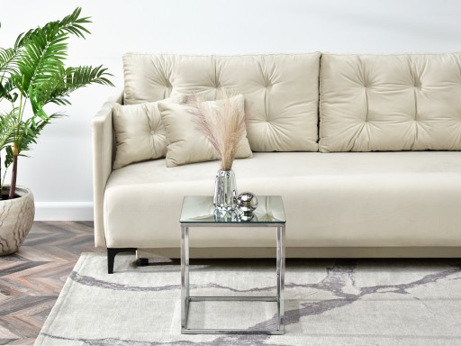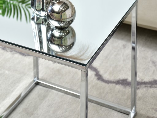 Stolik niewielkich rozmiarów BALI S ma wiele różnych możliwości zastosowania. Możemy go postawić obok kanapy, umieścić na nim lampkę, artykuły dekoracyjne, gazetę czy książki, tworząc przytulny kącik. Sprawdzi się też idealnie jako stolik nocny w sypialni w stylu nowoczesnym lub glamour. Kwadratowy stolik o lustrzanym blacie to wnętrzarskie must have dla każdego, kto ceni klasyczne i minimalistyczne akcesoria wyposażenia wnętrz w nowoczesnym wydaniu. Blat szklany w kolorze chromu pełni rolę lustra, które odbija wszelkie przedmioty na nim umieszczone.