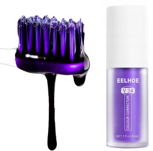 Pasta do wybielania zębów V34 Fioletowa Pasta do zębów z korektorem kolorów do wybielania zębów zawiera sorbitol, ksylitol, glicerynę i inne naturalne składniki, zapewnia kompleksową ochronę dziąseł i zębów i sprawia, że Twój oddech będzie świeższy.