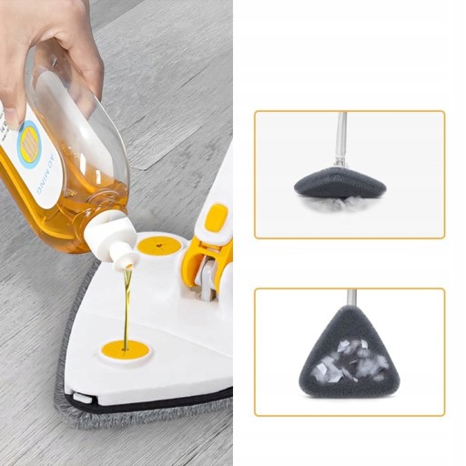 rójkątny kształt mopa pozwala na dotarcie do trudno dostępnych miejsc, które ciężko wyczyścić klasycznymi produktami do sprzątania.