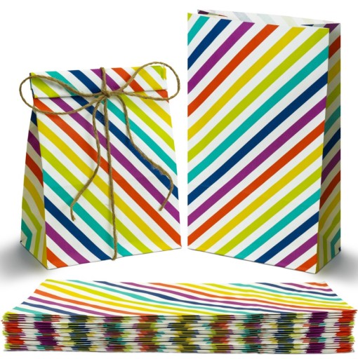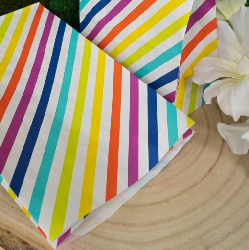 25 x Torebki PAPIEROWE 16x8x27cm KOLOROWE w PASKI KLOCKOWE NA SŁODYCZE