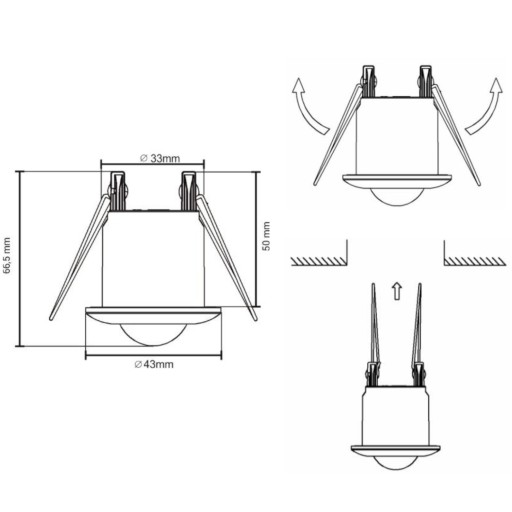 ✅ Czujnik ruchu PIR sufitowy 360° - włącznik podtynkowy: