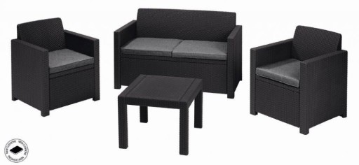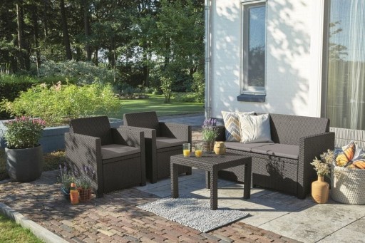 Zestaw mebli ogrodowych ALABAMA Keter Graphite to kompletny zestaw mebli idealny do przydomowej przestrzeni, zapewniający wygodę i funkcjonalność na świeżym powietrzu.
