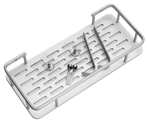 - W zestawie: 2 półki, 4 haczyki, 4 naklejki z klejem, 4 kołki montażowe, zaślepki, instrukcja