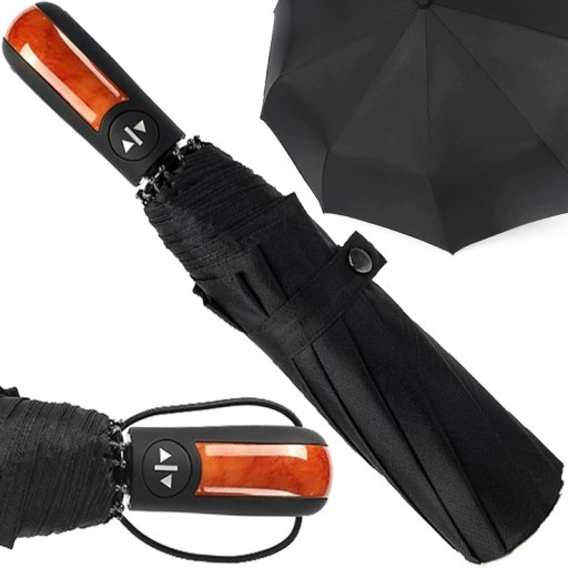 WZMOCNIONY PARASOL RZĄDOWY PARASOLKA SKŁADANA AUTOMAT UNISEX DUŻY CZARNY XL