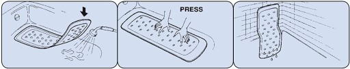 Matę mocuje się za pomocą bardzo dużej liczby bardzo silnych przyssawek, dzięki czemu można ją łatwo wyjąć w celu oczyszczenia