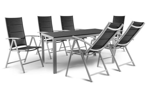 Nowoczesny zestaw mebli ogrodowych POLA, idealny na taras z najnowszej kolekcji Corciano©. Superlekki 100% aluminium.