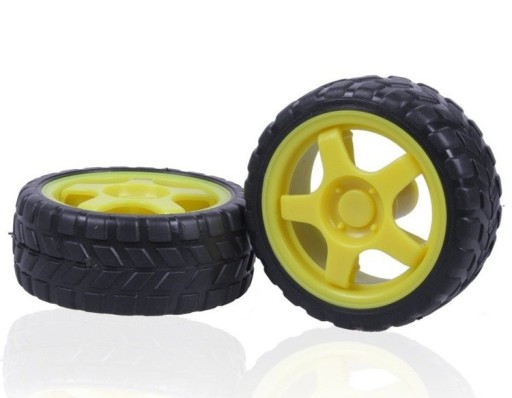- W zestawie koła o średnicy 65 mm z gumową oponą