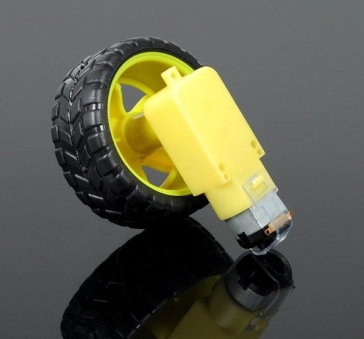 - Silnik z przekładnią oraz pasującym kołem (gumowa opona) umożliwia szybkie zbudowanie robota kołowego lub pojazdu.