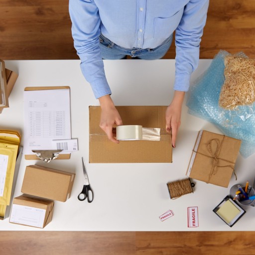 - 1 rolkę taśmy pakowej o szerokości 45 mm